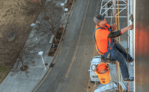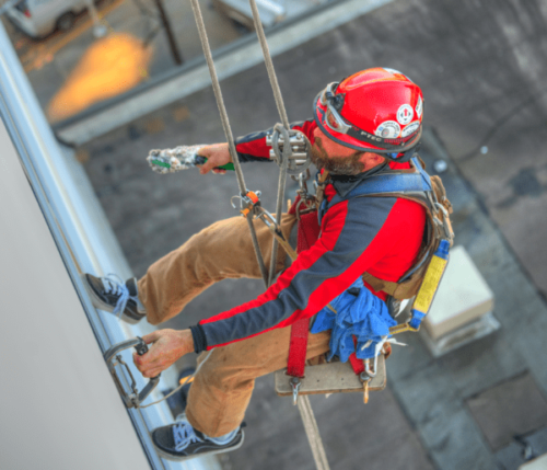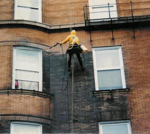 If we can’t get to your windows from the ground, we will get to them from the roof. To access the windows of your building, we may be able to use transportable suspended equipment, known as a boatswain chair or CDA (controlled descent apparatus) system. This system consists of two lines: a lifeline that is connected to the boatswain chair using a descent device, and a safety line that is connected to the individual’s full body harness with a rope-grab and lanyard. This allows for Apex to perform projects that may be difficult to institute a staging system and offer a more affordable option because of timed saved. All equipment used by Apex and its employees is OSHA/ANSI approved and is inspected on a regular basis to ensure the utmost safety.